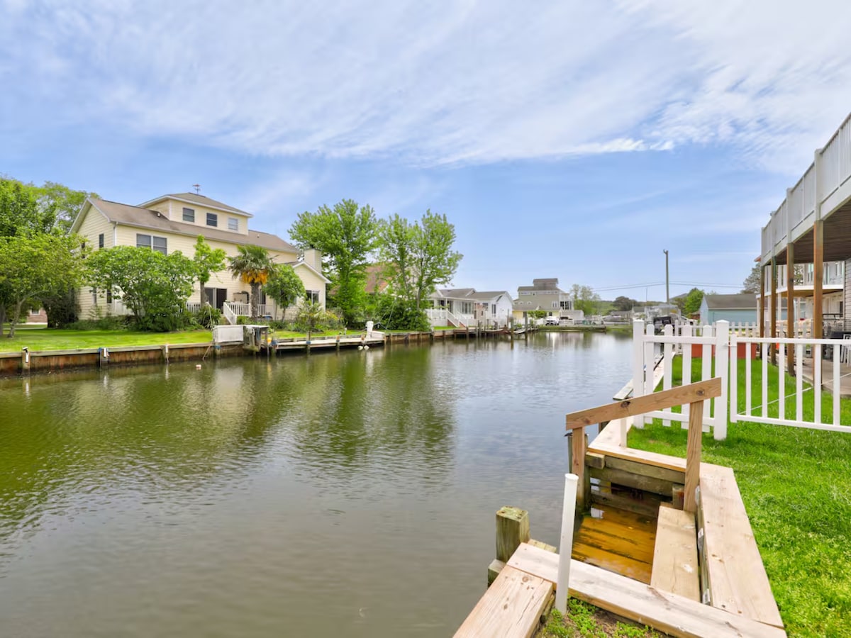 After relaxing at the beach (just a 7 min walk away), unwind on our deck "watchin' the tide rollin' away!" Get the best of the bay & the beach with this dog-friendly hidden gem! Imagine evenings enjoying the bay breeze as you crack crabs on the deck! Relax inside our open-concept great room that allows everyone to be together. Fish on our private dock or use it for your own boat or jet-ski to dock there. Witness spectacular sunsets with our Kayaks. Enjoy a well lit, private work space to virtual work w/ high speed internet! A new wood CRIB now in master suite for restful sleep! The pools and tennis/pickleball courts are only a few blocks away for your enjoyment! Plus, a truly unique OUTDOOR MOVIE EXPERIENCE for all our guests to make for the best Vacay EVER!