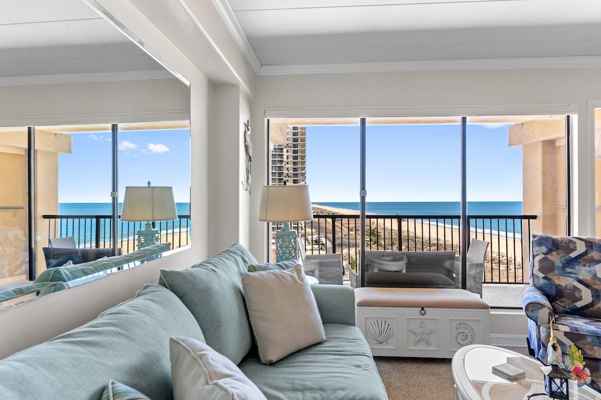 Enjoy stunning oceanfront views from this bright and open studio condo in High Point South on 112th Street. This direct beachfront unit comfortably sleeps 4 and features large windows that bring in plenty of natural light. Guests have access to a seasonal outdoor pool, secure building entry, and on-site laundry. Located in North Ocean City, you're just steps from the beach and minutes from shopping, dining, mini golf, and family-friendly attractions.
