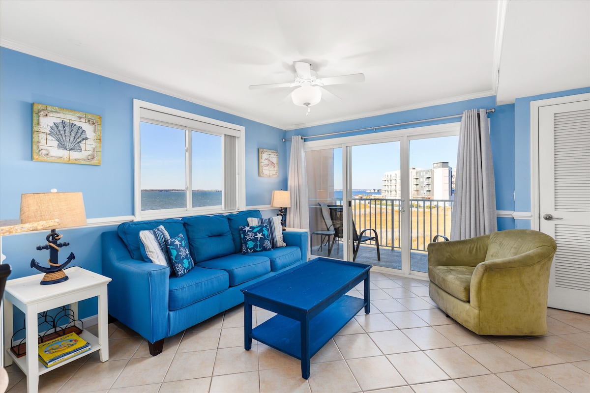 Launch your fabulous beach getaway at amenity-rich Sunset Cove at Sea Watch, part of an oceanfront condo complex offering 3 pools, complimentary movie theater, game room, gym, and much more. Enjoy spectacular ocean and bay views from 2 balconies, smart TVs in every bedroom and living room with provided satellite programming, fully equipped kitchen, comfortable living and bedroom spaces–and that’s just the beginning as your group has a blast at the beach and all of Ocean City’s fun attractions.