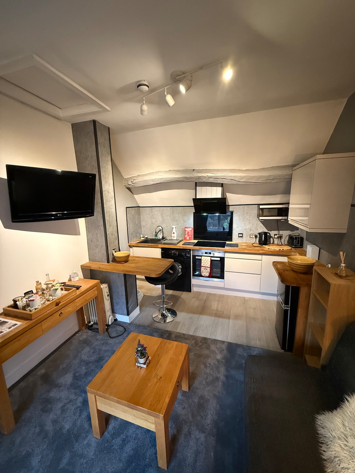 Welcome to 'Yeldside Studio', situated on the outskirts of Cleobury Mortimer, Shropshire. This modern studio apartment is newly finished to a high standard. Fresh and spacious, the studio is complete with a double en-suite bedroom, cosy living space, fully-equipped kitchen, dining area, and laundry facilities with designated parking on premises. Adjacent to our home, guests will enjoy the entire space to themselves, with a private access and flexible self check-in.