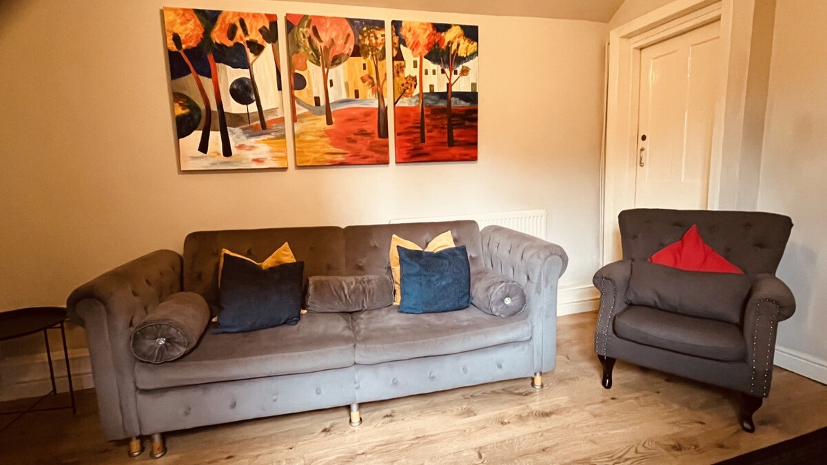 "Malvern Hills" studio apartment at No. 12 has been refurbished to a high standard and is full of quirky character, set in the eaves of the building. It is perfect for business travel or for a city break, but suits someone under 6 foot due to the sloping roofs! Each apartment at No. 12 has been named after one of Worcester's finest features and you'll find artwork from a local artist to match. No. 12 is perfect if there are a group of you wanting to stay. Message for more details or see below.