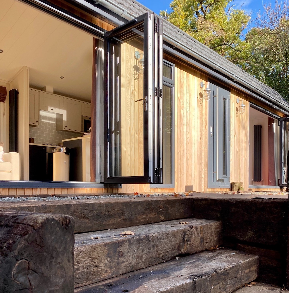 Escape to the woods and be at one with nature in our stylishly appointed and fully serviced cabin bolt hole. The bifold doors open back so that you feel immersed in the woodland and the airy feeling can be enjoyed on the plump sofa or whilst enjoying a coffee in bed. Sink deep in to our king size bed with the convenience of an ensuite shower room. Completely self-contained, there is a a well appointed kitchen plus sofa bed in the lounge for extra space.