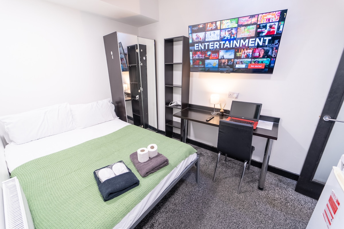 Stylish studio next to UOB in Selly Oak! You will be close to everything when you stay at this centrally-located studio. Located right next to UOB and a short walk from Queen Elizabeth Hospital. Perfect for short stays for students and professionals! All bedding, toiletries, towels and kitchen appliances included! Have access to the communal kitchen which has a gas hob, washing machine and dryer too.