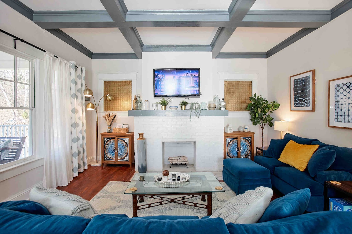 Make breakfast under the gabled ceiling of a pristine kitchen boasting vintage 1940s Youngstown kitchen cabinets. Combining white wood shiplap, oak scrap hardwood floors, and powder blue accents, this gorgeous home is steeped in historic charm. Expect to enjoy the natural light gleaning through the beautiful stained-glass windows. A rusted tin roof tops off this charmer, but it's the rainy nights where the rusted tin truly speaks to you. The farmhouse is a replica of what you see when driving through the beautiful rural Georgia landscape. Many of the old boards on the exterior were removed from a old home just south of Atlanta built during the civil war. The rest of the exterior came from an old cotton mill and a two room school house built in the early 1900's. It also has a tin roof that is most enjoyable during those rainy nights. The interior walls have all ship lap and bead board siding. The kitchen boasts an old wash board sink with matching metal cabinets from the 1940's. The bathroom has a old stain glass window and an authentic distressed medicine cabinet. The living area has two more stain glass windows and distressed oak floor throughout. It has a king size bed and a full couch for comfort. The exterior has one small upstairs porch and a sitting area down near the stairs entrance. The house is at the dead end of an ally and not near any major intersections. This makes the space quiet for an urban setting. Even though the house was made to appear old, it has many of the amenities you would want in a newly constructed house such as a tank-less water heater for those long hot showers, and spray foam insulation for comfort. Note: lower area is non living personal space. Listing is for upper studio. Checkout what the Atlanta Journal Constitution had to say! https://www.ajc.com/events/new-airbnb-rentals-perfect-for-atlanta-staycation/IsHf1Ztws2J2u1wFbOm2zM/ Guest has rear ally parking space located right next to the house. There is one flight of stairs to reach access. We will have the space ready for you when you arrive but will respect your privacy. Our main home and the farm house share a lot so if something is needed we are not far away. The farmhouse is privately tucked behind the main house on a private drive with it’s own entrance and parking. Coffee shops, restaurants, The Atlanta Zoo, Atlanta Beltline, historic Grant Park, Georgia State Stadium and the Eventide Brewery are all within walking distance. Close attractions include, Centennial Olympic Park, World Congress Center, Mercedes Benz Stadium, World of Coke, Fox Theater, Phillips Arena, Ponce City Market and Georgia Aquarium all less than 2 miles.