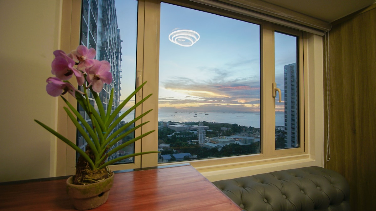 Welcome to La Brise — your private penthouse escape above the city. Perched on the 40th floor of Breeze Residences, this fully renovated 1BR offers breathtaking views of Manila Bay, with a cozy, thoughtfully designed space you’ll actually want to stay in. Whether you’re here for a quiet staycation, a work trip, or a quick city escape, this place was set up to feel easy, comfortable, and a little special.