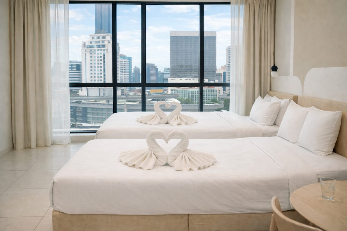 舒适的家庭房源,2张标准双人床,1间卧室,阳台@Regalia PWTC