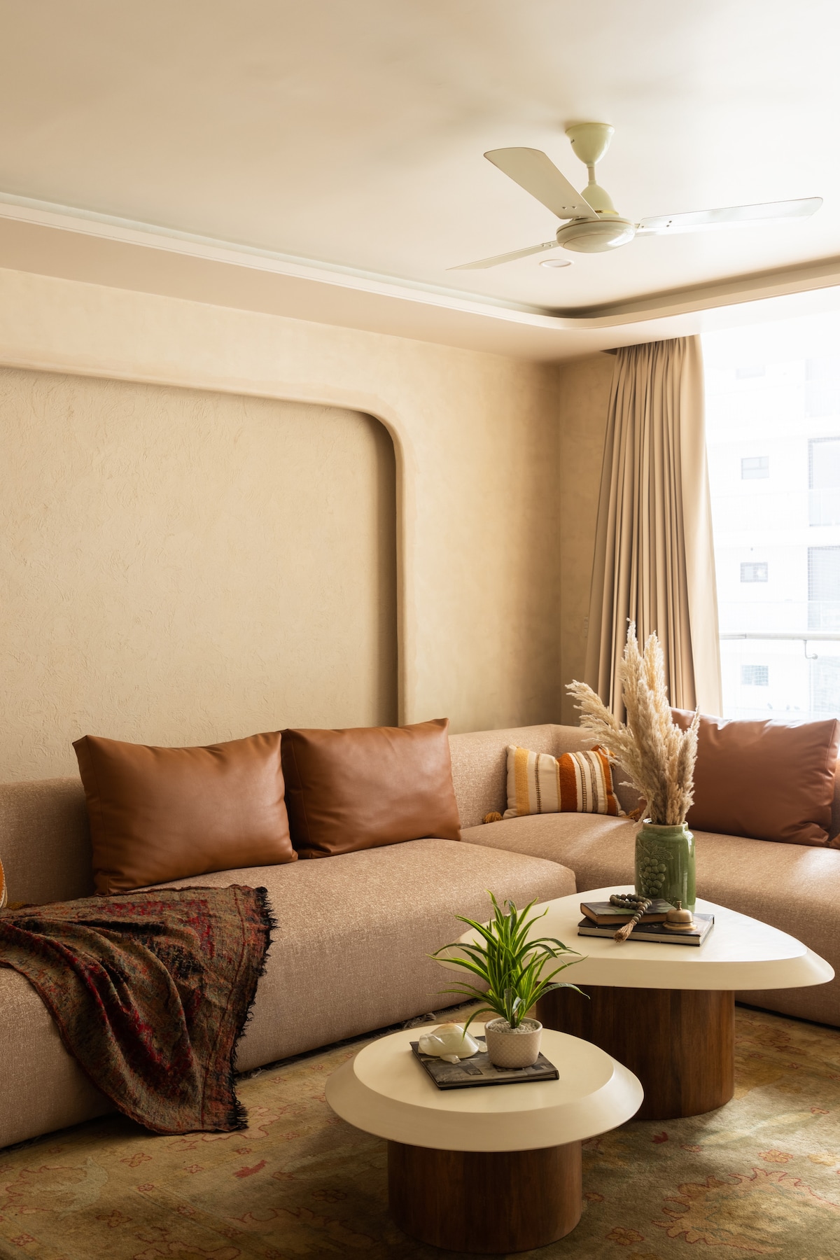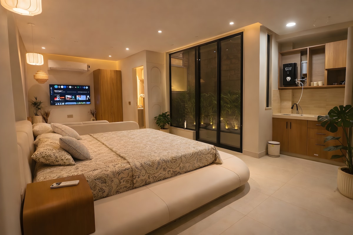 Welcome to Mist n Meadows — a warm, thoughtfully designed boho-inspired studio overlooking a peaceful fountain. This cozy space features a Smart TV for relaxed entertainment and a functional kitchen for preparing simple meals. Ideal for couples or solo travelers, it offers comfort, convenience, and a calm residential setting for a truly relaxing stay. And yes… no balcony here — but hey, fewer pigeons judging your life choices and more time to actually relax 😄
