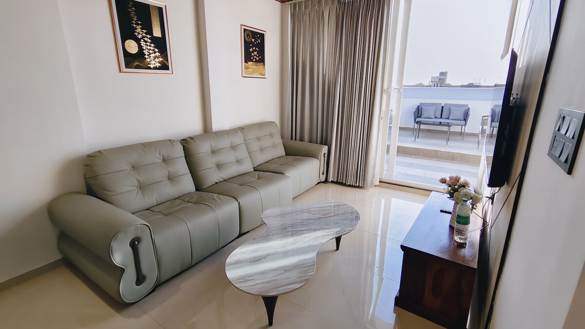 An artistic space thoughtfully curated .Tucked away from the hubbub of the city.This luxury two bedroom apartment comes furnished with a spacious living room designed to Netflix & Chill.Get lost within yourself as the aesthetically lit corners of the apartment embrace you in a warm hug. Enabled with all major amenities and comfort , We have kept everything in mind from chic high end bedroom, To the best Netflix n chill setting.This apartment doesn't fail to impress its guests.