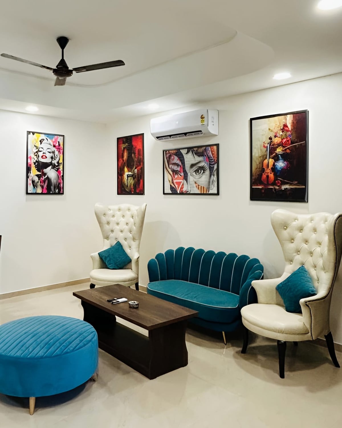 Welcome to Timber Luxe Atelier, where art, antiques, and craftsmanship meet. Featuring stunning European artworks, elegant antiques, exclusive carpets, and exquisite teak wood ceilings, this residence feels like a living gallery. Relax on the grand 10-seater sofa, enjoy movies on the 50-inch TV, or admire the warm timber interiors. Every detail, from curated paintings to carved woodwork, reflects timeless luxury. A stay here isn’t just accommodation it’s an experience.
