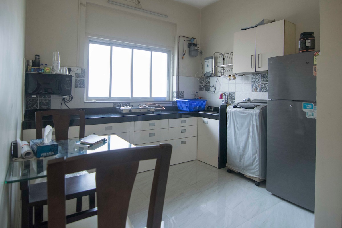 A centrally located 1 BHK apartment in Goregaon West Mumbai with metro station right on the door step. Nearby places include NESCO Centre, Infinity Mall Inorbit Mall, Lokhandwala. Only 10Kms from International airport with excellent east to west connectivity. Elegantly styled with friendly vibes furnished with all amenities for long and comfortable stay. Best suited for Families, corporates and crisp work stays. A fully equipped kitchen with optional househelp for home cooked meals and cleaning.