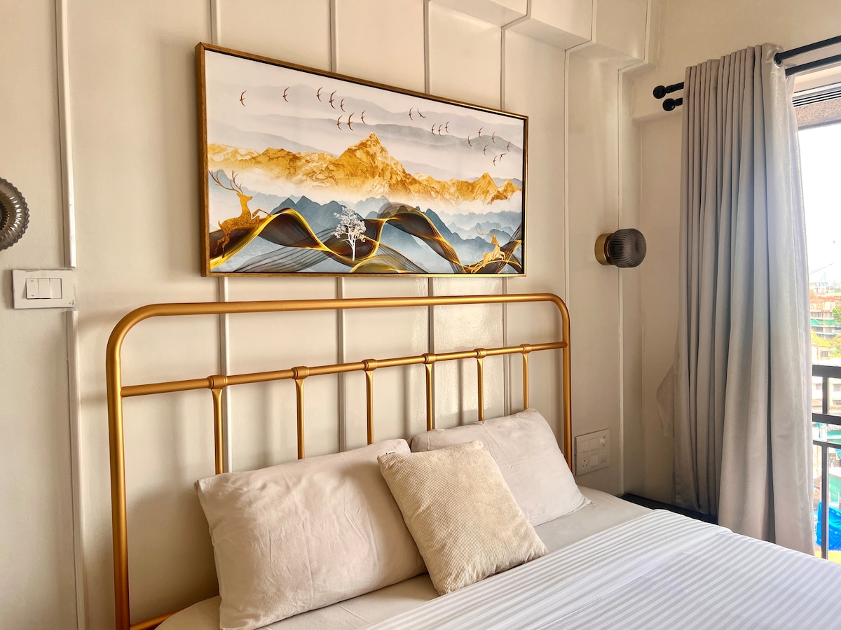 A fully furnished studio apartment. Perfect for both short and extended stays, this retreat is nestled in the upscale Gurunanak Park area of Bandra West. The apartment offers a modern designed space with everything you need to feel at home. Whether you’re here on business or leisure, you’ll love its prime location — easily accessible and just moments from Bandra’s most loved hotspots. Step out to find Starbucks, Standby Coffee, Magnolia Bakery, and Benne Dosa, all within walking distance.