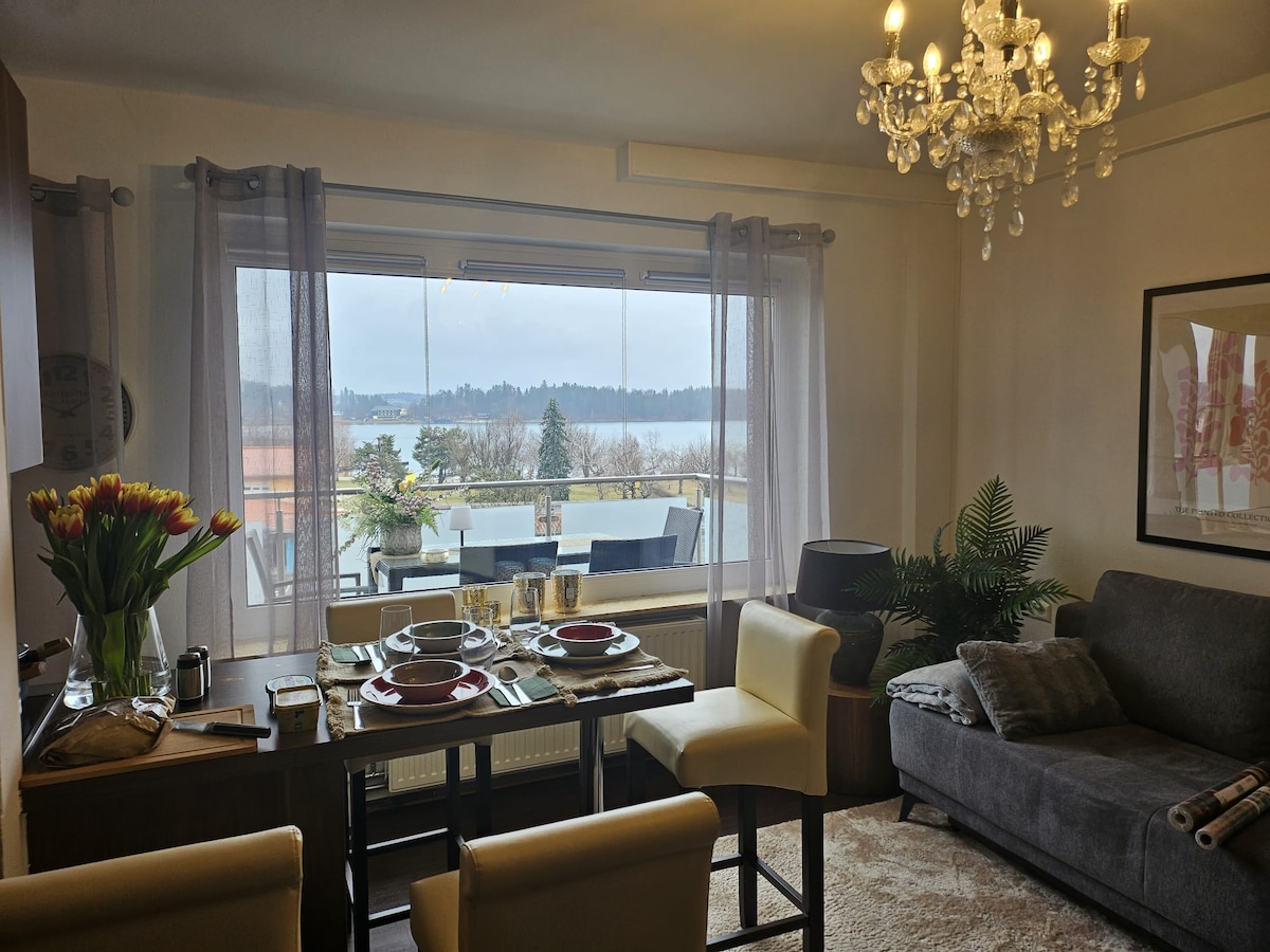 公寓很棒,可直接通往湖边,并且可以看到湖景