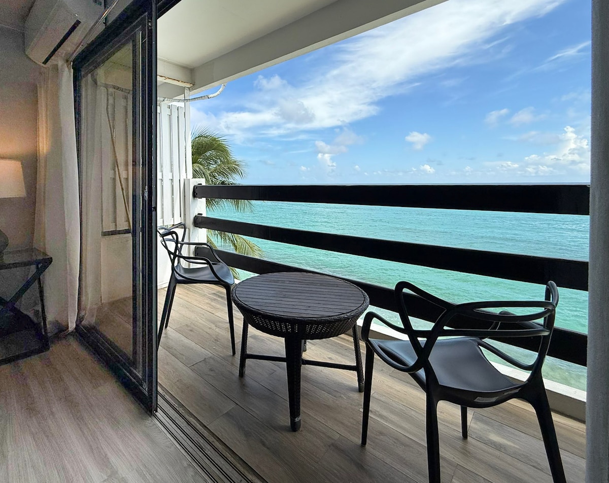Warmest welcome! "One Love" sits at the entrance of St. Lawrence Gap—the vibrant heart of Barbados' dining and nightlife. Perched on a private beach, its stunning pool blends seamlessly with the sea, where waves kiss the deck, redefining relaxation. From your third-floor apartment, wake up to breathtaking turquoise waters, the soothing rhythm of waves, and enchanting melodies of nightly music drifting through the air. The music can be loud at times, adding to the area's lively atmosphere.