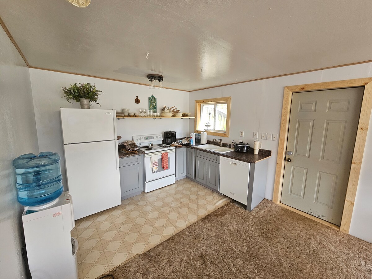 **From May-June 2026 there will be roofwork Monday-Thursday and may be daytime noise / workers present. We have blocked those days but can open if requested.** Driftwood Palace is a recently renovated 1 bedroom / 1 bathroom waterfront guest suite. A short 5 minute drive from downtown Petersburg, but feels a world away with water views from nearly every room. The West-facing covered porch is just feet from the Wrangell Narrows, and is great for watching sunsets, wildlife, and boats.