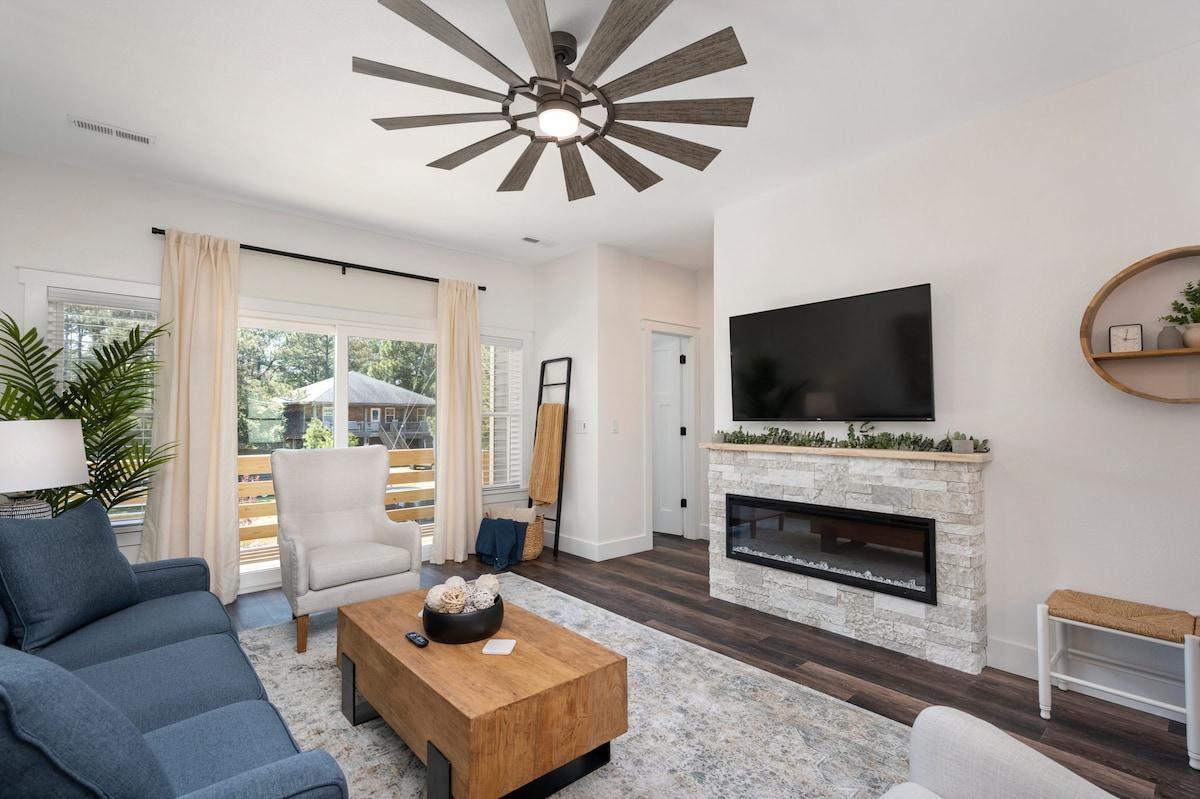 燃气壁炉,宽敞私密。步行即可抵达海滩
