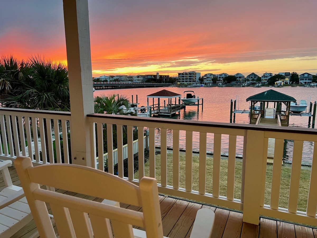 Beautifully located duplex in the tree lined Harbor Island community of Wrightsville Beach. Amazing view of Banks Channel from the top floor porch/sunroom along with the back door stunning sunset view over the marsh and elementary school. Enjoy riding our bikes, paddling on provided kayaks in Banks Channel across the street, a jog around the famous 2.5 mi loop, or a fun day at the beach! Easy 10-minute walk or very short bike ride to the beach, bars, restaurants, coffee, shopping, and ice cream