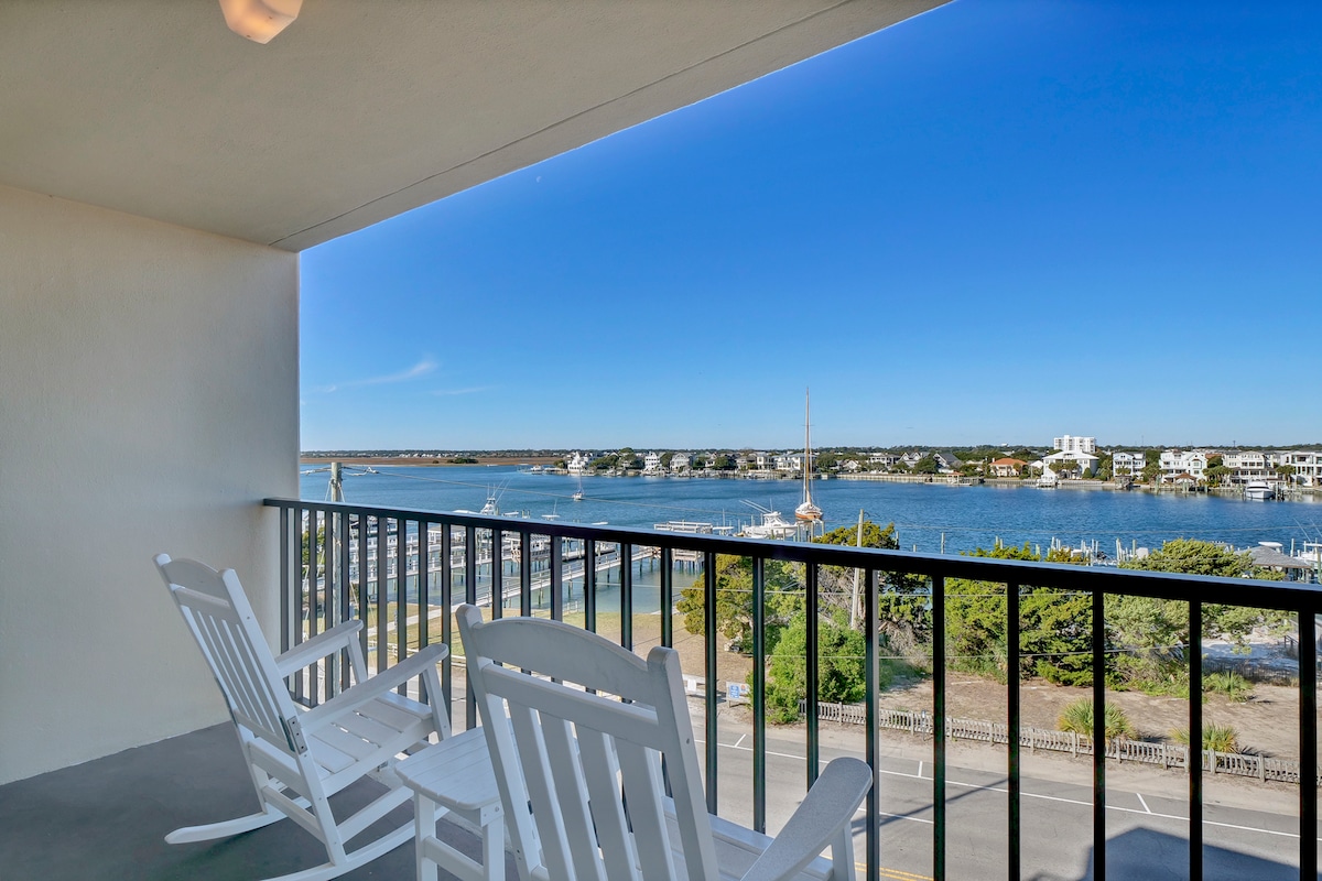 Welcome to Ola Verde, a unique, cozy and centrally located condo overlooking 180 degree water views of Banks Channel and Greenville Sound on the north side of Harbor Island in Wrightsville Beach. The views simply can't be beat along with the relaxing shady porch and proximity to local shops and restaurants. Park the car for the duration of your stay and immerse yourself as a local with a walk or bike ride to the beach, coffee, bite to eat or concert in the park. Lots of amenities on site as well