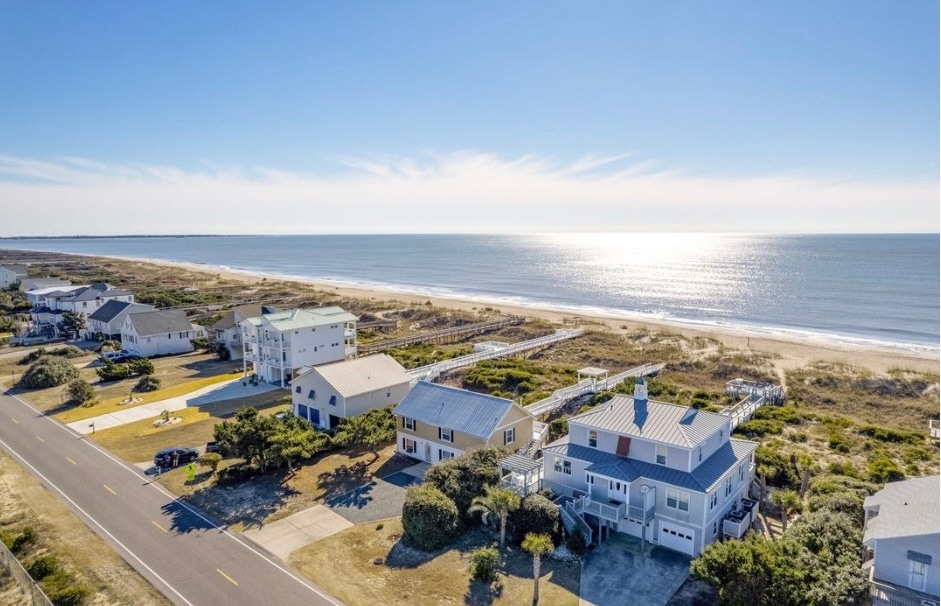 Take a break & unwind at this peaceful oasis. Come relax under the covered deck & hear the ocean breeze! Direct beach front vacation home, just steps from the ocean. With enough space to sleep 9 this beachfront cottage offers beachy interior design & has recently been completely renovated new flooring, cabinetry, quartz countertops. Whether you're in town to fish off the coast or soak up the North Carolina sun on scenic Oak Island, you can't beat this updated beach getaway! Hit ❤️ to save!