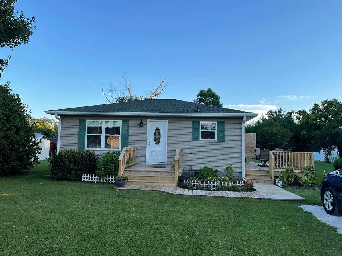 迷人的小屋,步行可至海滩,带门廊和停车位