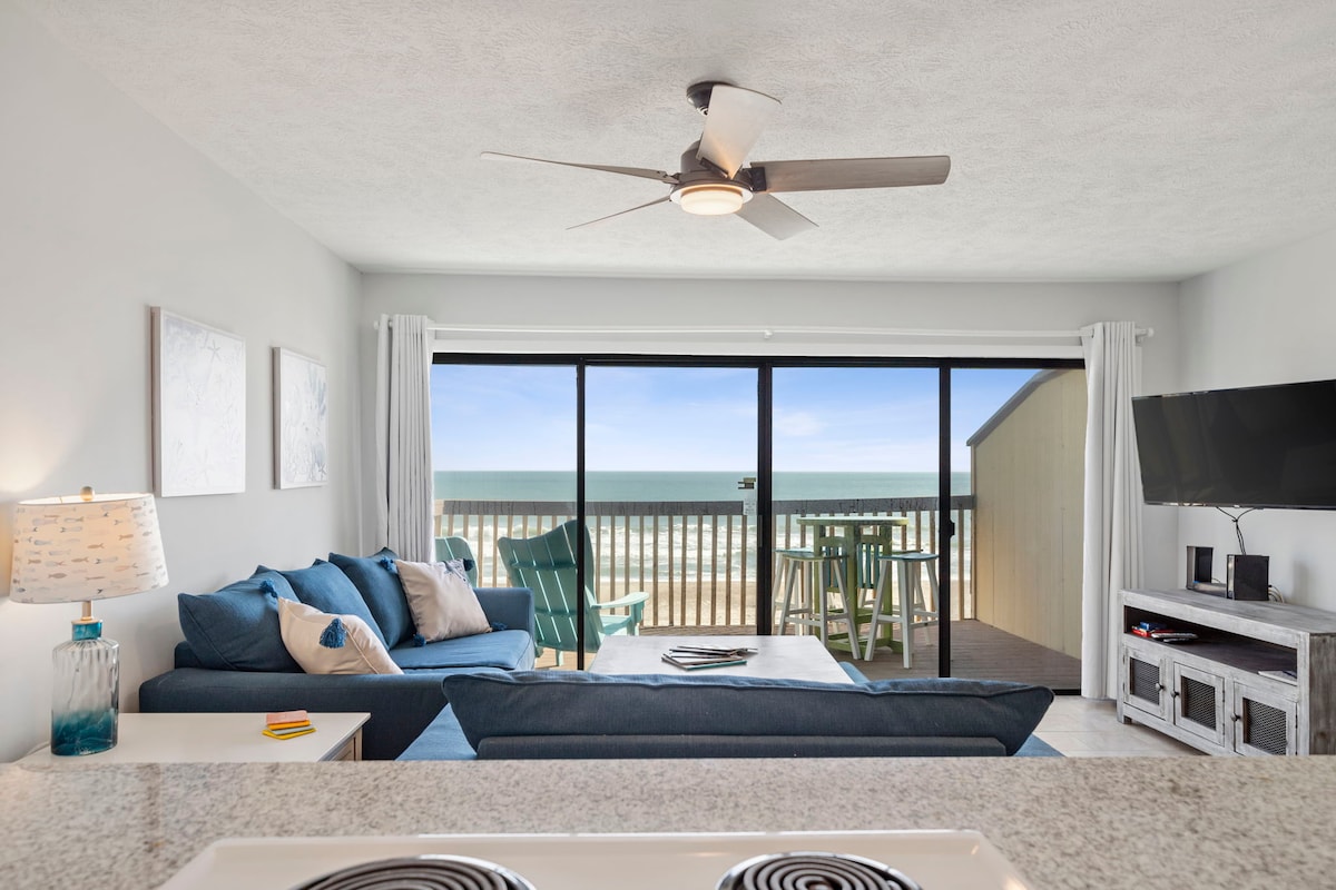 Oceanfront condo just steps away from the sand on the pristine north end of Wrightsville Beach, NC. This ground-floor unit at Shell Island Resort provides direct access to the beach boardwalk, indoor and outdoor pools, hot tub, full restaurant and outside bar. An open-air walkway connects the condo entrance to the parking deck so no need to walk through the lobby or use elevators; allowing for safe social distancing your entire stay.