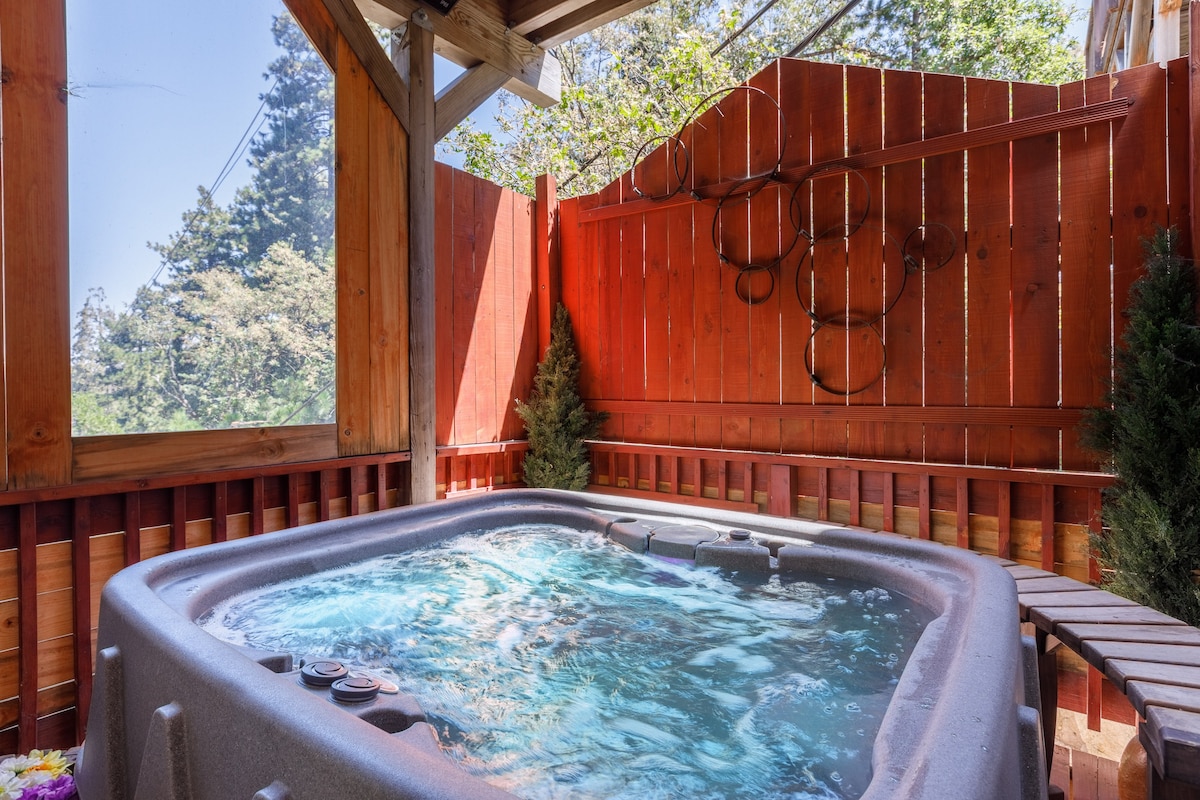 Explore our stylish and cozy, pet-friendly mountain cabin in Wrightwood, CA. Enjoy the new 4-person hot tub amid the pines. Only 1.5 hrs from LA, 2 hrs from San Diego, and 10 mins from Mt High. With 3bd, 2.5 ba, luxury linens, and a cul-de-sac location by Angeles National Forest, relax and reconnect with nature. Walk to town, ski/snowboard, or hike the Pacific Crest Trail. Unwind by the outdoor or indoor fire and recharge. Plus, a *NEW EV Charger.🔌