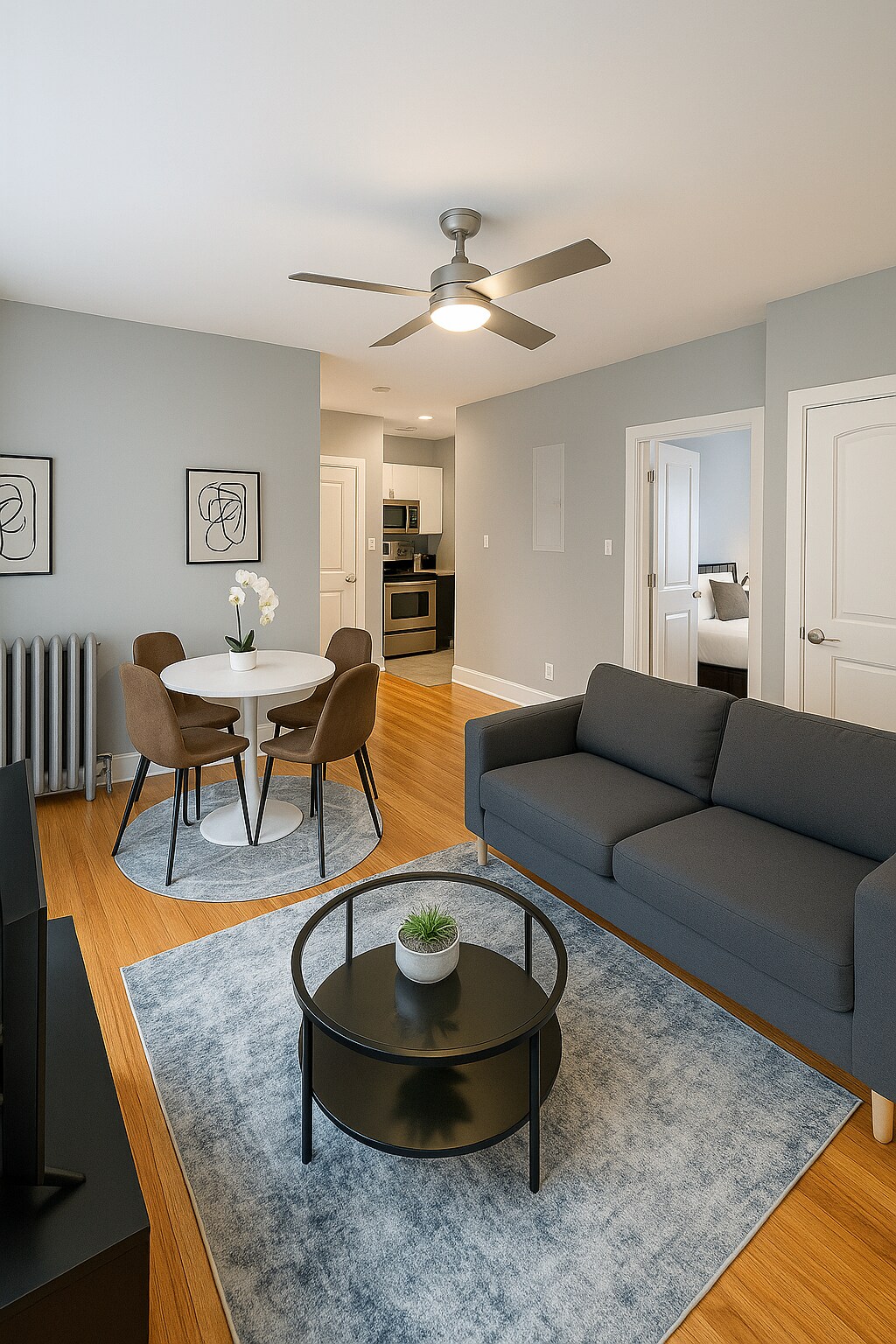 Blue by choice, not accident. Feelin' Blue-tiful is a bold Chicago apartment in the dead middle of prime Wrigleyville, just steps from Wrigley Field, the Red Line, and Clark Street. An ideal spot for guests who want comfort, style, and walkability in one of Chicago’s most lively North Side neighborhoods. Striking blue tones, curated art, and plenty of light give this space a memorable, design-forward vibe that is perfect for guests who want a unique stay near the ballpark.