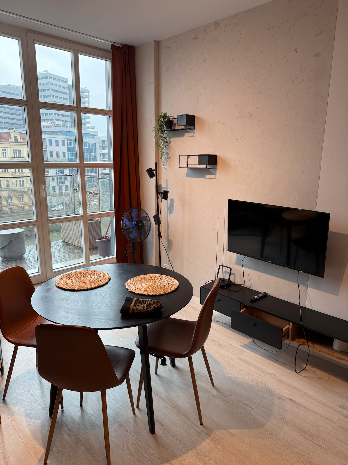 A fresh, luxury apartment in downtown Wroclaw. Located in a new modern apartment building with an elevator. Quiet, secure, and well-situated. Just a few minutes walk to the city center. Spacious balcony with a breathtaking view. 400 meters from the Main Market. Free high-speed fiber optic WiFi, 55" 4K SMART TV, AC. Free underground, secured and monitored parking place !