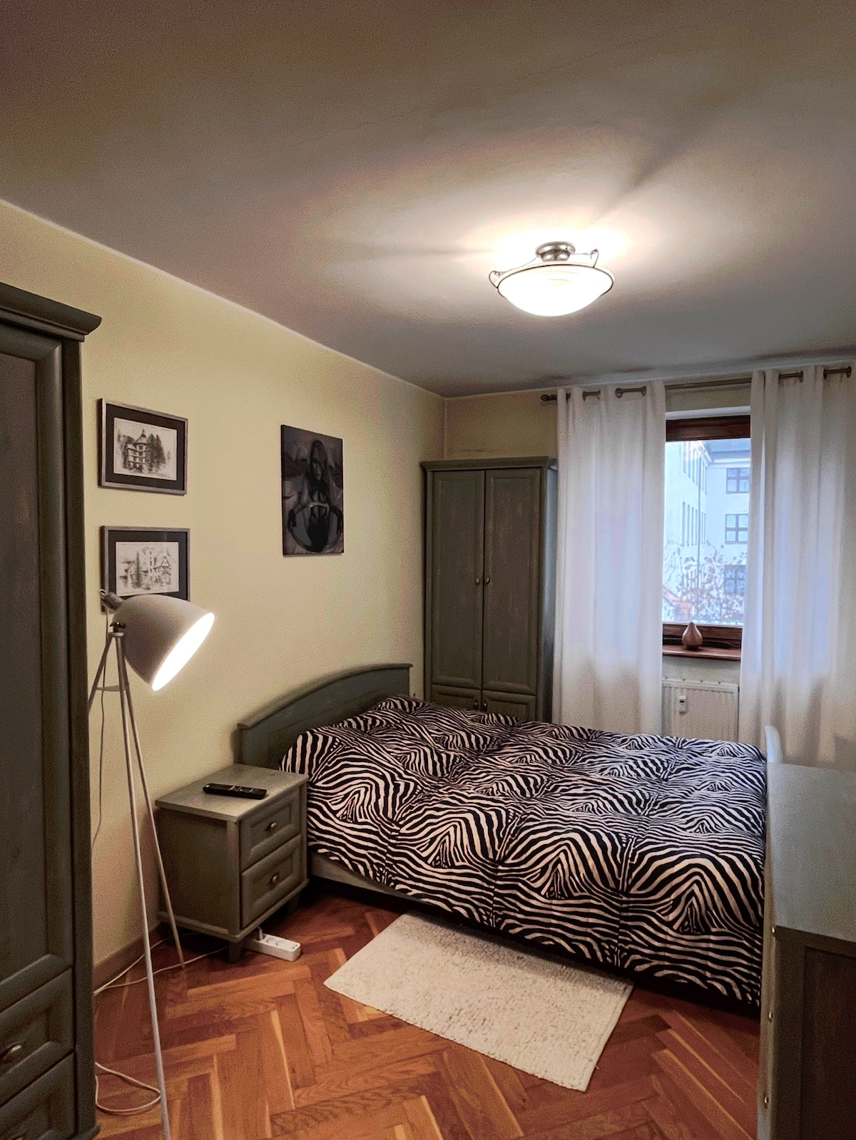 1-osobowy pokój w centrum Wrocławia ul. Psie Budy, Stare Miasto Pokój Łóżko 1-osobowe z pościelą, 2 poduszkami, kołdrą i całym zestawem świeżej pościeli Wygodne łóżko i przestronna szafa 2 ręczniki na pobyt Biurko/stół do pracy dla 1 osoby Stół w przedpokoju do spożywania posiłków Aneks kuchenny Wyposażony w naczynia, garnki, szkło, sztućce Zmywarka, chłodziarka, płyta indukcyjna WiFi Pralnia Wszystko w cenie Preferowany czas pobytu: 28 dni-Maksymalny: 365 dni Możliwe również krótsze rezerwacje