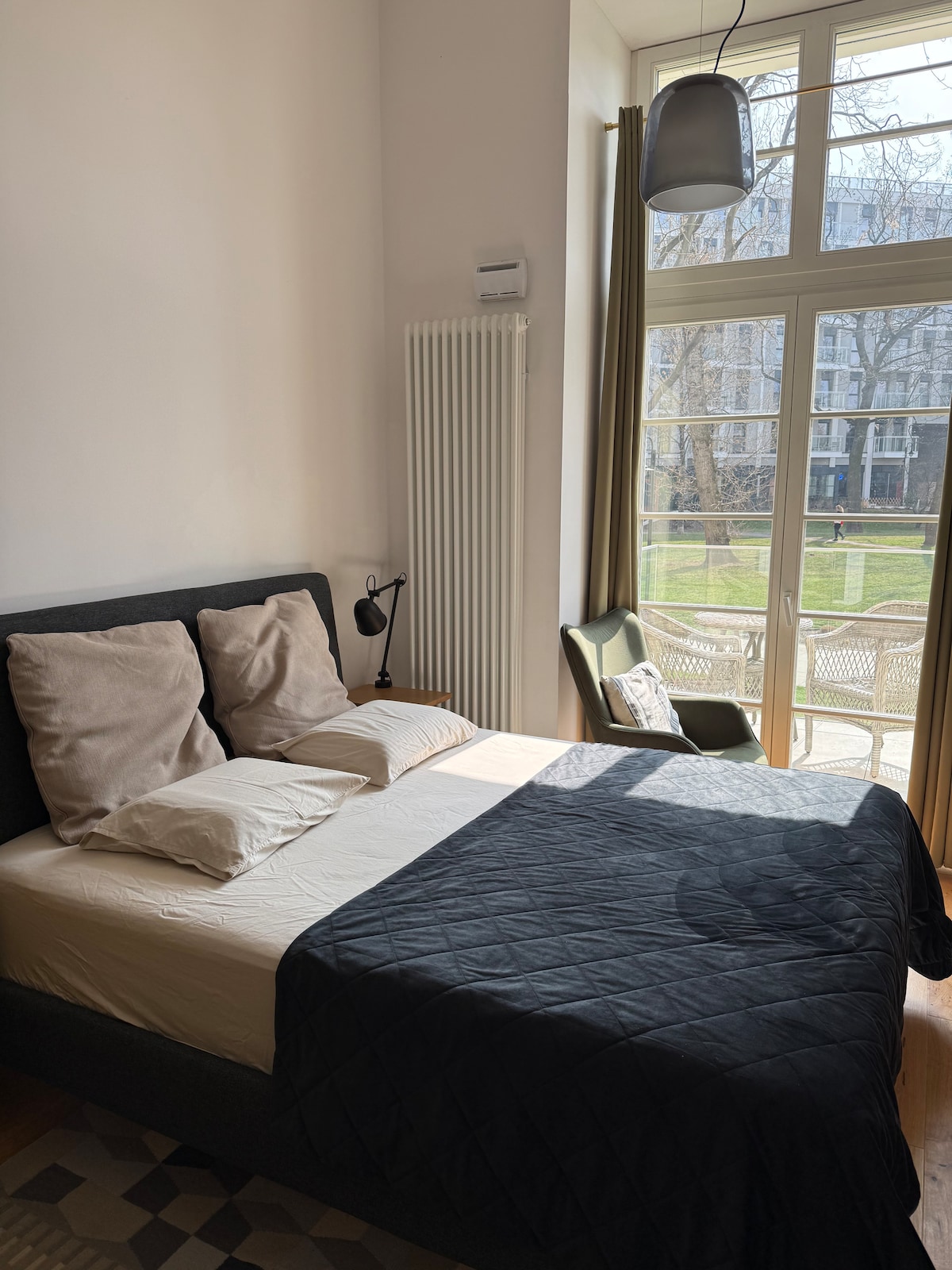 Willkommen in unserem frisch renovierten Schirdewan-Apartment. Auf einer Fläche von 190 m² stehen Ihnen 5 Zimmer (4 Schlafzimmer, 1 Salon), 2 Badezimmer (1 Wanne, 2 Duschen, 2 WC), eine riesige Wohnküche sowie ein extra Gäste-WC zur Verfügung. Bei der Renovierung haben wir Wert auf den Erhalt der Originalelemente gelegt (Parkettböden, Originaleingangstür) sowie durch moderne Elemente ergänzt (hochwertiger ökologischer Linoleumboden in der Küche, Rain-Shower-Dusche, modernstes Home Entertainment)