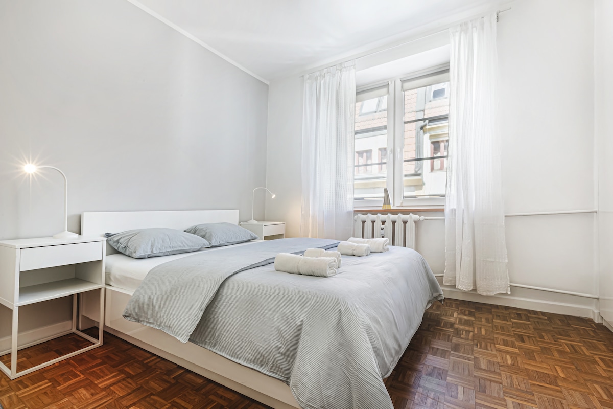 Apartament w centrum miasta, w spokojnej dzielnicy. Miejsce znajduje się na 5 piętrze nowego budynku, może przyjąć dwóch gości, posiada sypialnię z podwójnym łóżkiem, łazienkę, salon z aneksem kuchennym oraz duży taras. Idealne miejsce do zwiedzania miasta bądź podróż służbową. Istnieje możliwość wynajęcia miejsca postojowego w garażu podziemnym (płatne dodatkowo). W mieszkaniu do dyspozycji jest wyposażona kuchnia, czajnik elektryczny, żelazko, pralka, świeże ręczniki oraz pościel.
