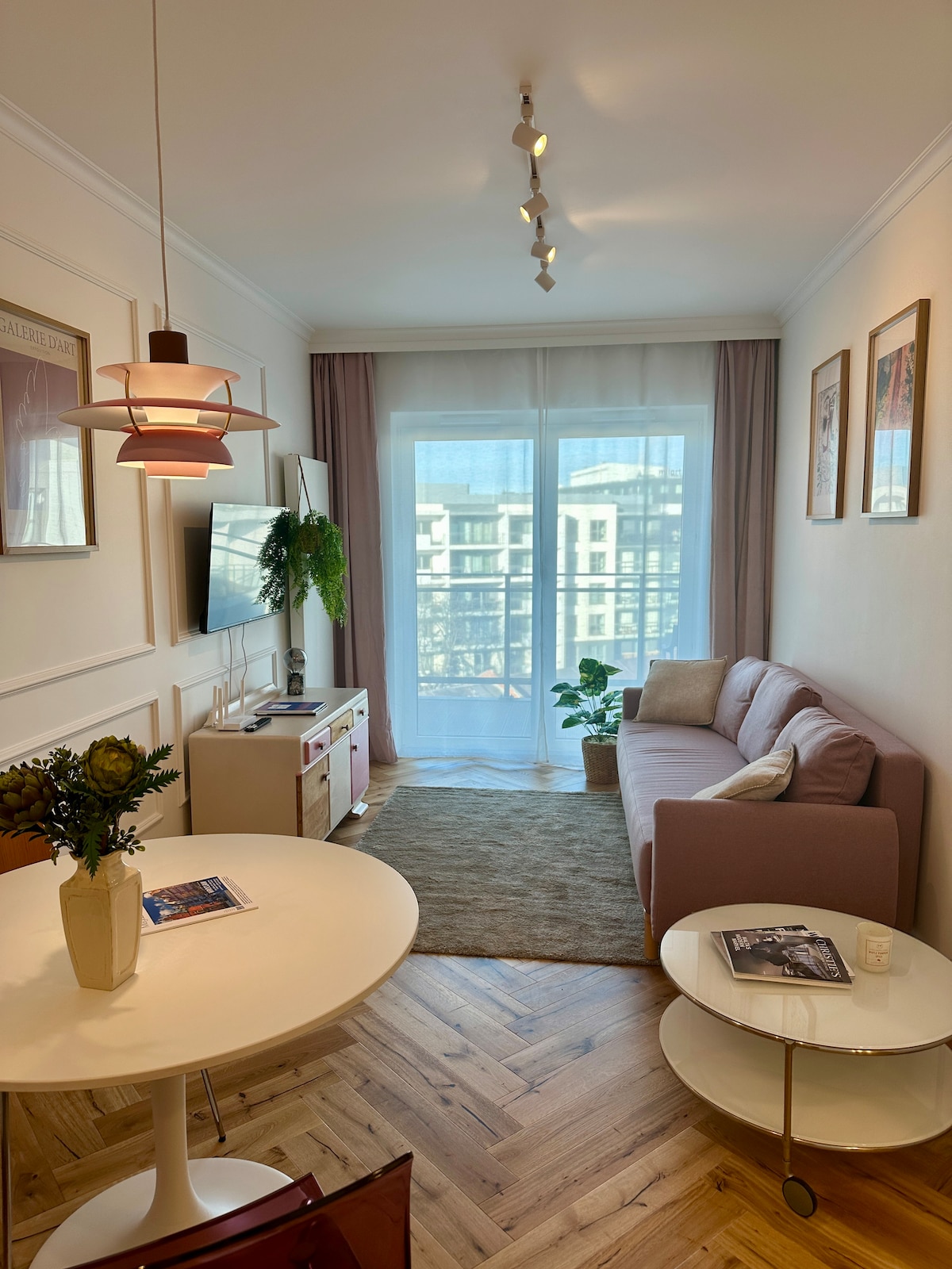 Luxury apartment with two separate bedrooms, a spacious living room, and a large balcony overlooking the Oder River. A fully equipped kitchenette, sofa bed, SMART TV, and elegant bathroom ensure a comfortable stay. Located in the center of Wrocław, close to public transport, cafés, and restaurants, it allows you to enjoy the very best the city has to offer.