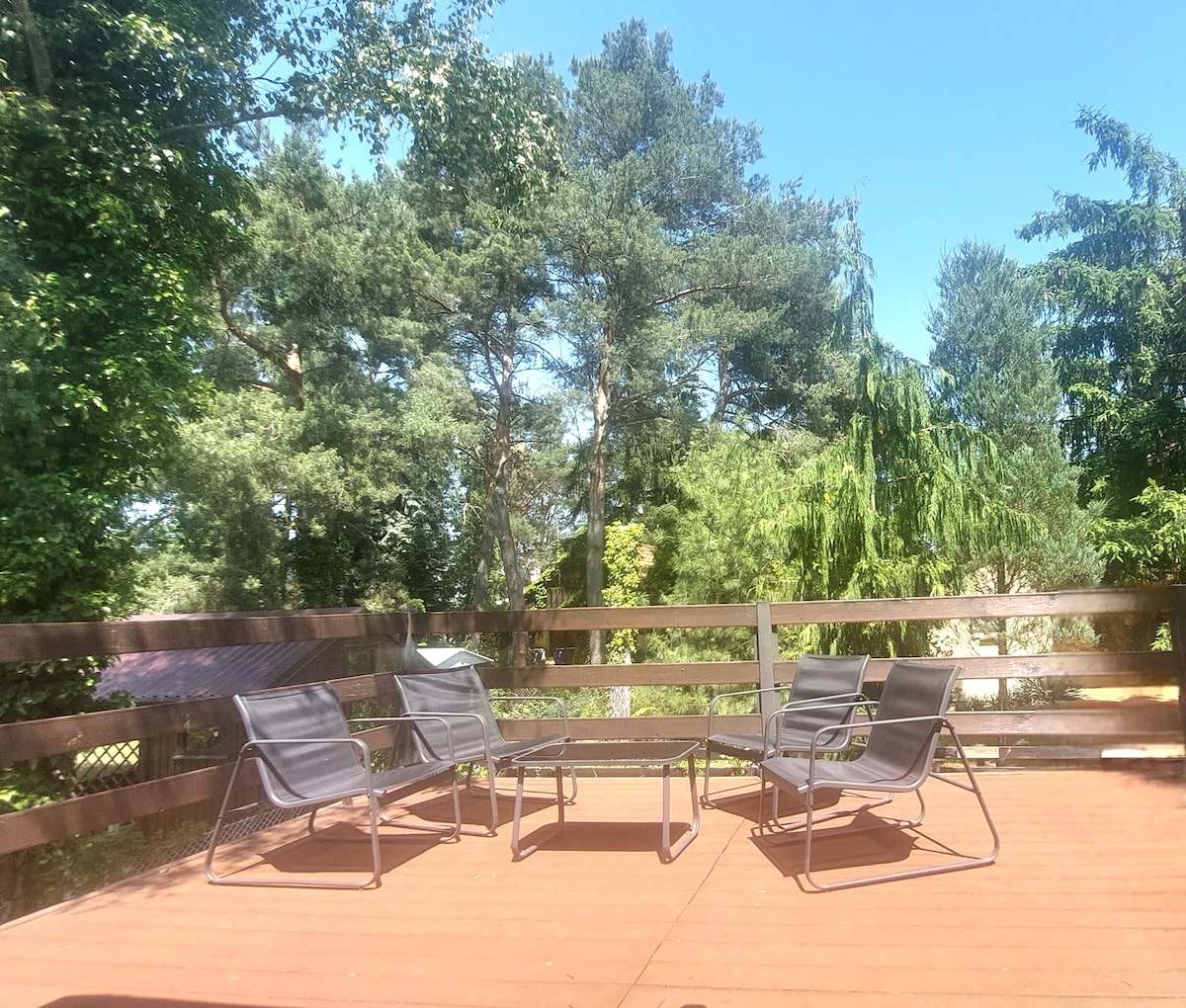 Oaza spokoju i ciszy. Domek do wynajęcia jest ukryty wśród drzew, zapewnia schronienie przed upałami. Z dala od zgiełku ulic. W okolicy są liczne trasy sprzyjające spacerom i wycieczkom rowerowym. Kameralne kąpielisko nad jeziorkiem Plusznym, kładki dla wędkarzy - minutę drogi od domku. Wszystko na wyciągnięcie ręki, wśród wszechogarniającej zieleni, ciszy i śpiewu ptaków. Do dyspozycji gości jest duży, zamknięty, zielony teren, huśtawki i piaskownica dla dzieci.
