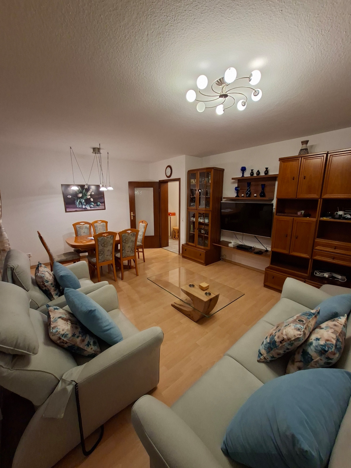 Welcome to our spacious and modern apartment in the heart of Hanover! The apartment consists of a total of 3 rooms spread over 81 m², including 2 bedrooms, a bathroom, a kitchen and a large living and dining area with direct access to the balcony. Look forward to a pleasant stay thanks to comfortable amenities. Wi-Fi, Smart-TV, coffee, tea, mineral water and fresh towels and bed linen are included.