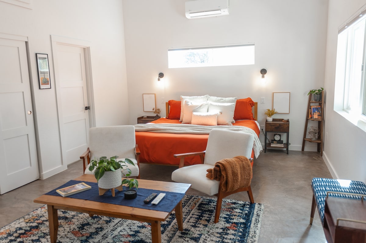 Located near the Schultz Creek trailhead, this is ideal for mountain bikers, hikers, and folks that just want to enjoy some of Flagstaff's best trails. It's a short drive to the Snowbowl, and yet downtown is only 3 miles away – by bus, car, or bike path. Cozy, quiet, upscale guest cottage with golden light pouring in. To top it off, Grand Canyon is just 70 miles up the road!. If you want to be close to town and yet steps from the national forest, don’t miss this gem. Owners' house is on-site.