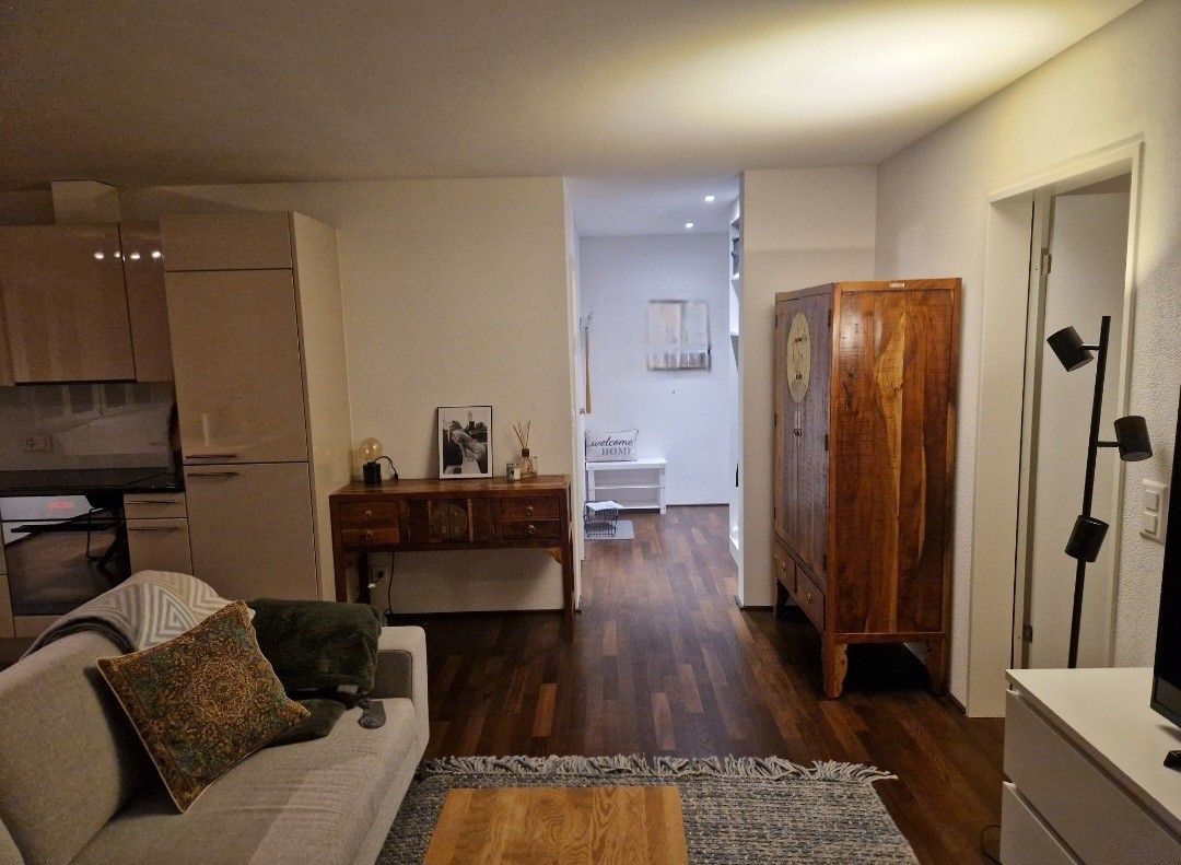 Very beautiful, large and stylish 1.5 room apartment, quiet and sunny. Clean, tidy and with all modern amenities. Free parking in front of apartment. Steps away from nice forrest and amazing landscapes, couple of steps away from public transport. 20 minutes to city center and lake. Feel very welcome and enjoy the personal touch in this outstanding location!