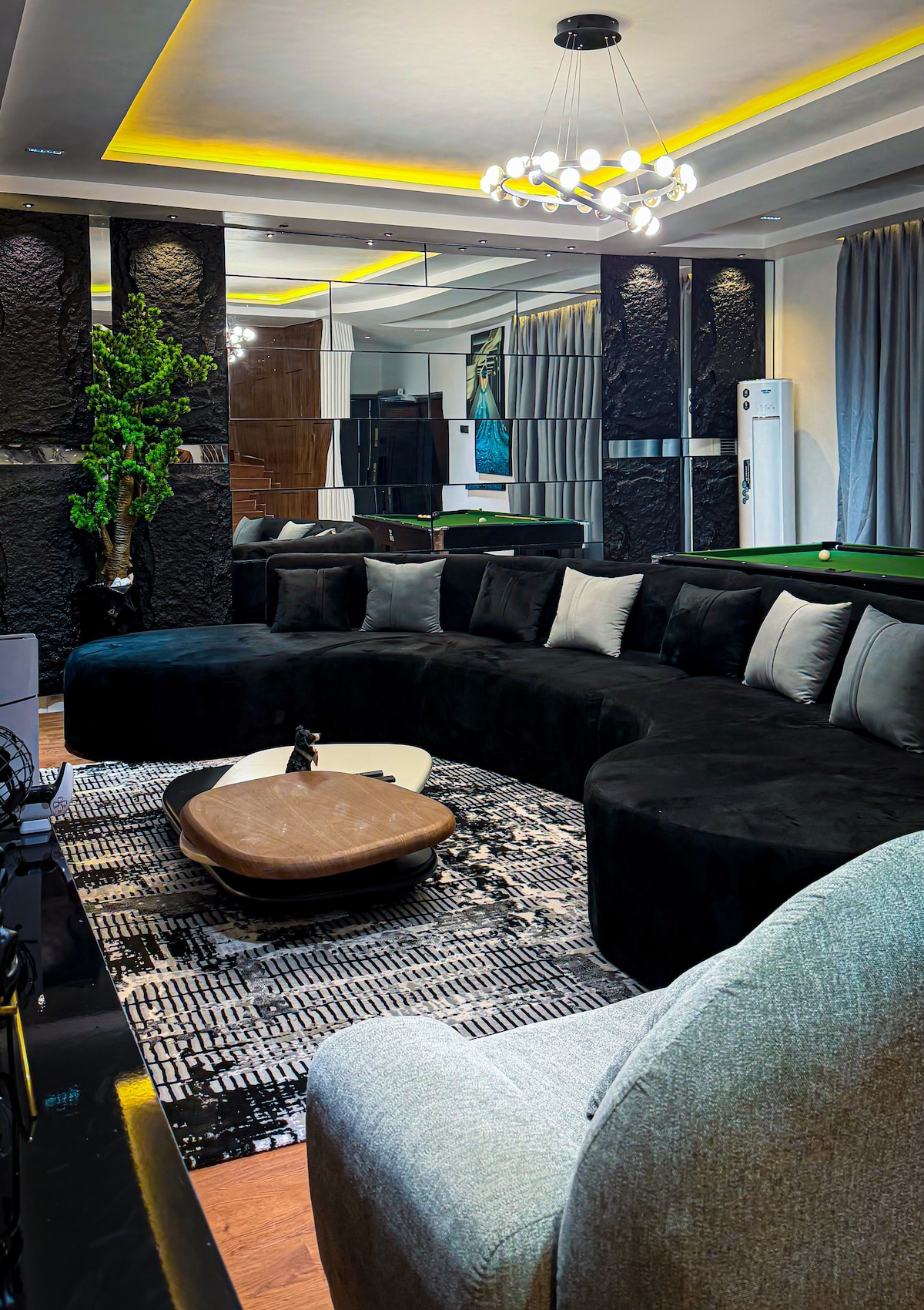 Morak homes is an oasis in a busy city, our modern, smart, beautiful, bright, our 4 bedroom home is perfect for low-key families, couples or friends that are seeking a peaceful and entertaining stay. The tastefully designed interior will provide a serene and comfortable setting for you while you visit Abuja. The property has a swimming pool, games room, Snooker, Table soccer, PS5, Netflx, Fast Wifi, DsTv. All TVs are Smart