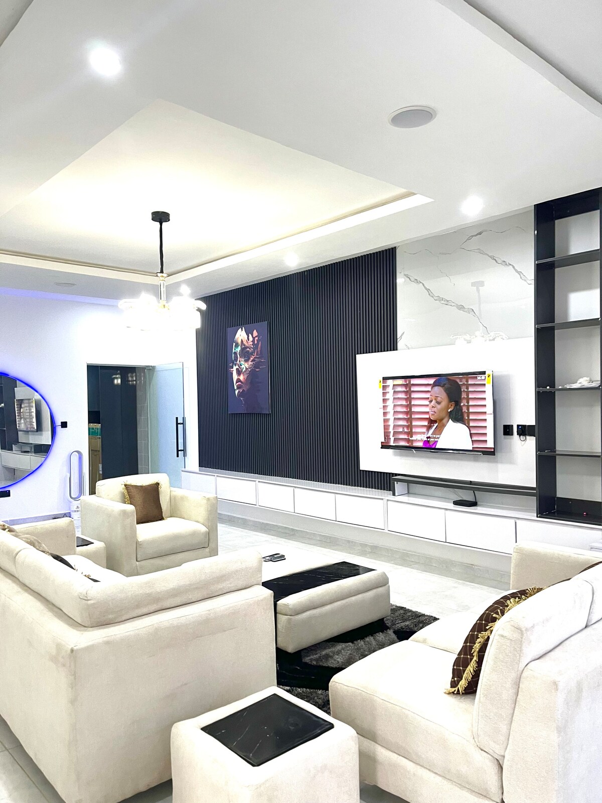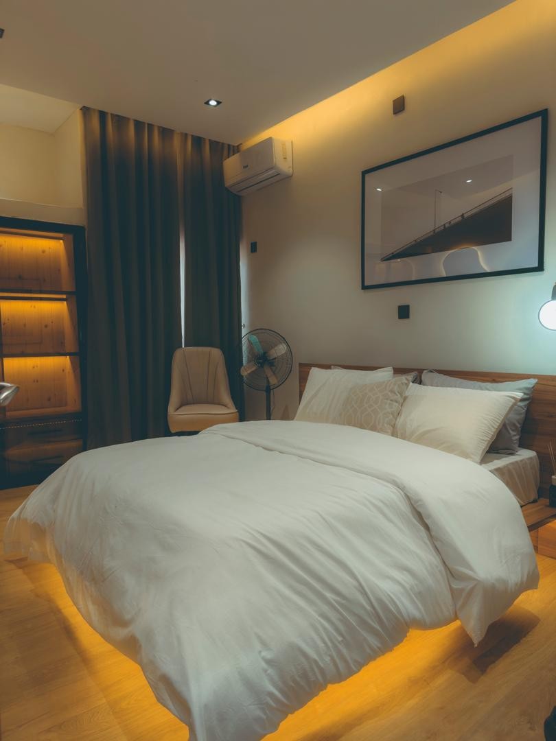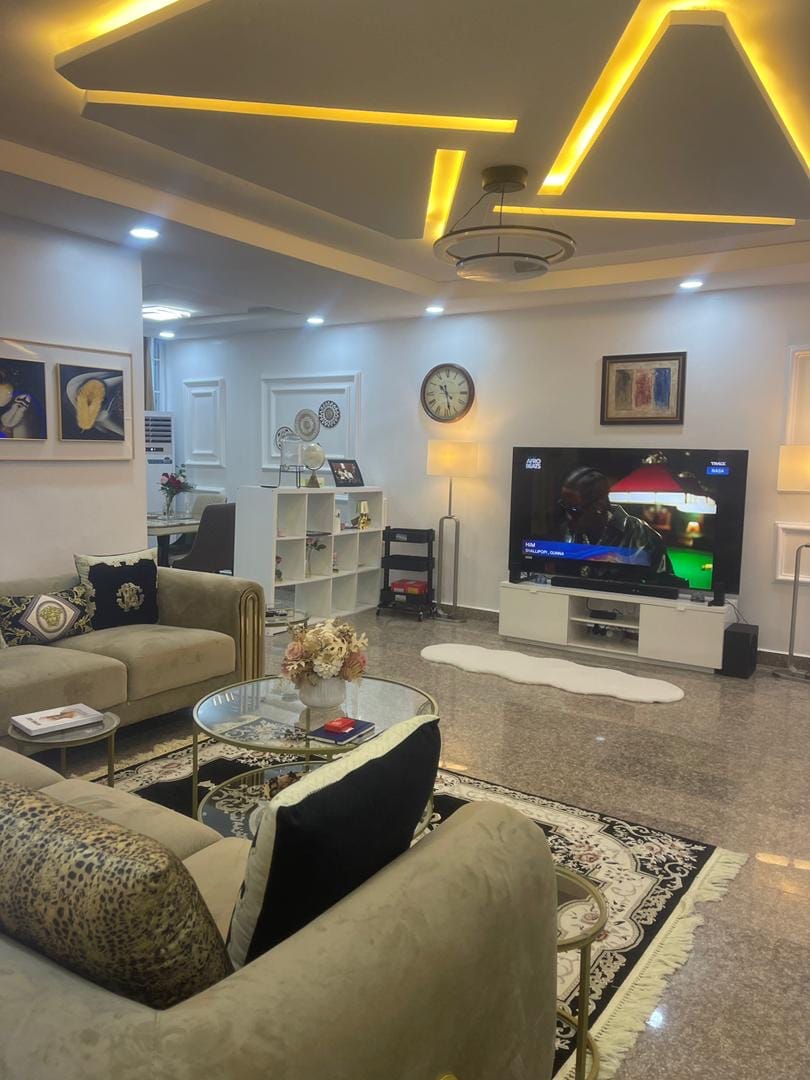 Enjoy a stylish experience at this centrally-located Apartment. A 2 bedroom apartment with features like PlayStation 5 & Latest Games on request, Godfather Clock Antique clock, 65 inches Tv. we also offer tight security, 24/7 surveillance, 24/7 Power with backup Generator, WI-FI, Free parking, providing residents with a sense of safety and peace of mind. We have the best shopping centre’s & clubs nearby like 4U Supermarket, H-Medix, Pay Greens supermarket etc.