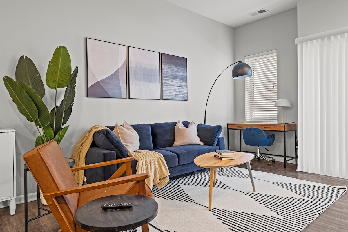 Welcome to your stylish 2-bed, 2-bath urban retreat in the heart of Kansas City. This charming Airbnb blends modern comfort with convenience, featuring bright interiors, contemporary furnishings, and tasteful décor. Enjoy a fully equipped kitchen with sleek appliances and unwind on the private balcony with coffee or wine while taking in city views. Gym, Balcony + Parking included. Perfect for professionals and relocations, designed for long term stay comfort.