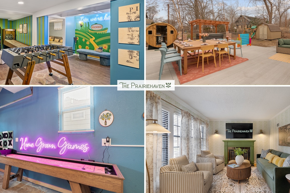 🌿 The Westport Oasis – top-rated KC retreat near Plaza & Westport 🌿 4 bedrooms + 3 full baths + 3rd-floor loft – sleeps 10 🌿 Spacious living room w/ Smart TV + high-speed WiFi 🌿 Fully stocked kitchen + dining area for 8 + enhanced coffee bar 🌿 Game room w/ foosball, Pac-Man, darts & bonus kitchenette 🌿 Outdoor sanctuary w/ fenced yard, dining space & 6-person hot tub 🌿 Two master suites (incl. jacuzzi tub & in-room laundry) + cozy guest rooms 🌿 Tommy Bahama bath products + fresh towels