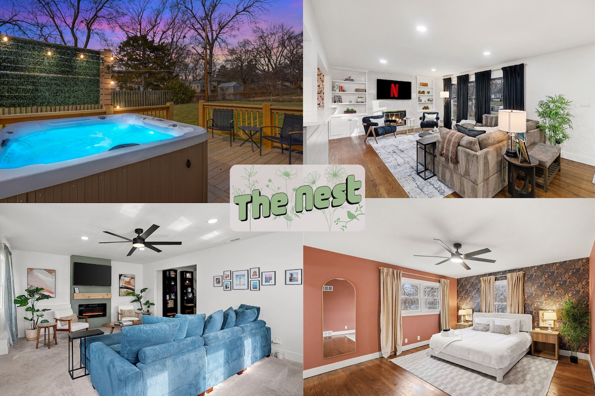 舒适的KC度假屋,配备热水浴缸|靠近电力和灯光