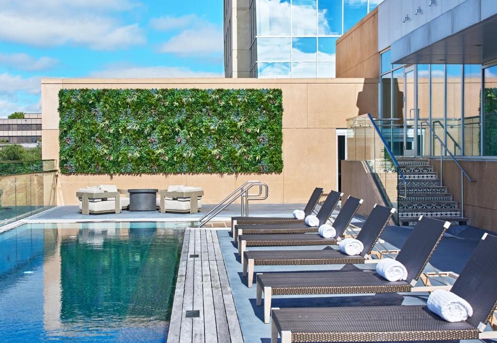 Are you on a quest for insatiable pleasure? Experience soothing moments and luxury at this aesthetic haven situated at the centre of Kansas City, engraved with custom tile mosaic marble floor, walls embellished with intellectual classical arts, and Venetian glass chandelier worshipping hanging on the ceiling. Go on a shopping quest at Country Club Plaza and enjoy reflective moments by taking a walk-through Ewing and Muriel Kauffman Memorial Garden which is a two-minute walk from the hotel.