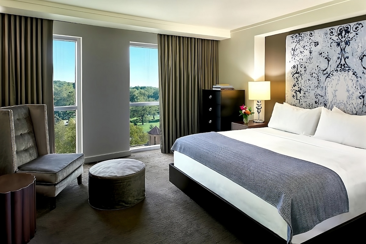 Are you on a quest for insatiable pleasure? Experience soothing moments and luxury at this aesthetic haven situated at the centre of Kansas City, engraved with custom tile mosaic marble floor, walls embellished with intellectual classical arts, and Venetian glass chandelier worshipping hanging on the ceiling. Go on a shopping quest at Country Club Plaza and enjoy reflective moments by taking a walk-through Ewing and Muriel Kauffman Memorial Garden which is a two-minute walk from the hotel.
