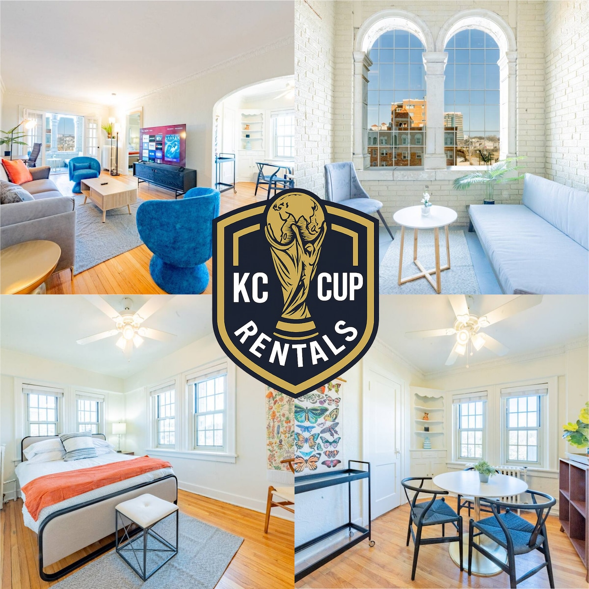 Sink into sapphire velvet sofas by the fireplace in this designer midwest cottage. Open-concept living flows to chef's kitchen and farmhouse dining under stunning copper pendants. Two serene bedrooms with premium linens, full laundry, spa-inspired bath. Relax on the covered porch with stone pillars or explore Strawberry Hill. Private parking, smart TVs throughout, short distance to SplitLog Coffee. Modern comfort meets craftsman charm. Pet-friendly. Your perfect KC escape
