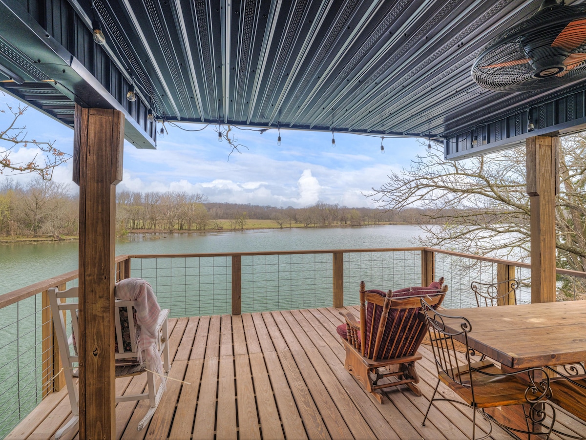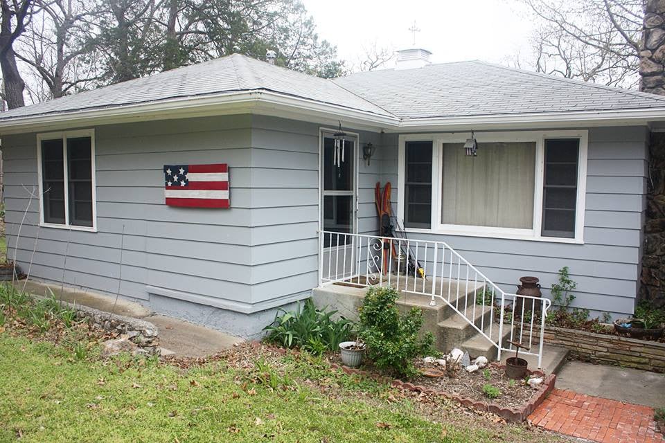 Relax at our family friendly lakefront cabin. Clean and functional living space. Large deck with beautiful views of Grand Lake. Shorefront access with stairs. Enjoy sunrises and sunsets on the deck or in the sunroom. Kitchen is fully stocked with all necessities. Extra linens, towels, and toiletries provided. Gas grill on upper deck. Only a 10 minute drive to Grove, OK. Please note there are several stairs to get up to the cabin itself (it’s how we get such a beautiful view :).