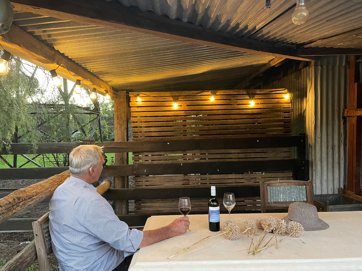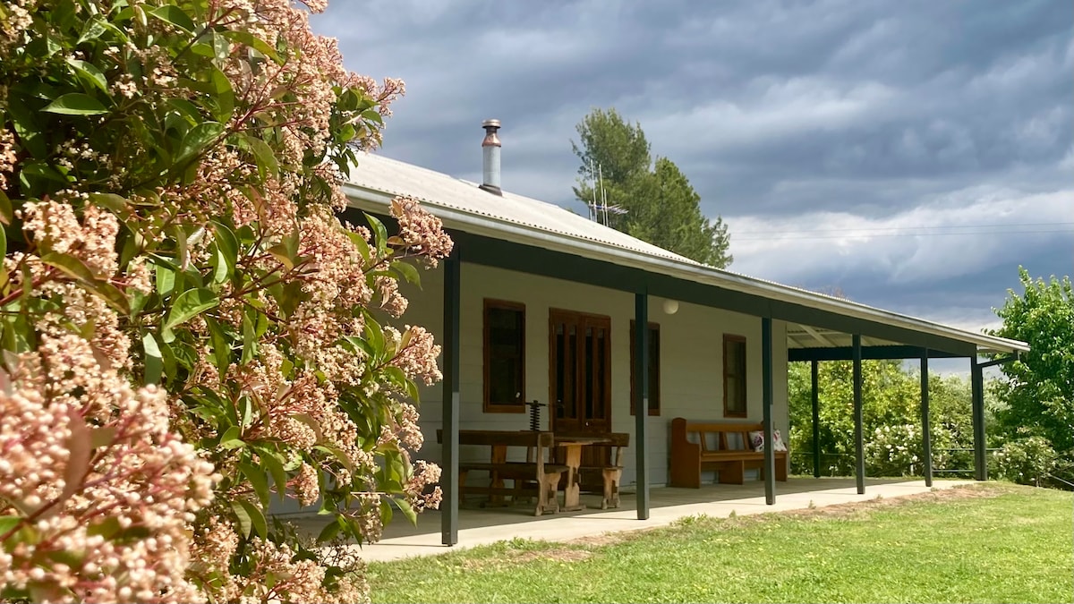Chaffcutters Cottage - @chaffcutters_cottage - is charming and rustic. Parking is plentiful, pets are warmly welcomed, the night sky is abundant with stars and the location is peaceful. Delightfully reno'ed, it is comfortable and practical in a stunning rural setting. Cosy in winter and airconditioned in summer with a picturesque verandah framed with grapevines, perfect for watching the sun set towards the Weddin Mountains with a glass of wine in hand. 15 minutes from gorgeous Canowindra.