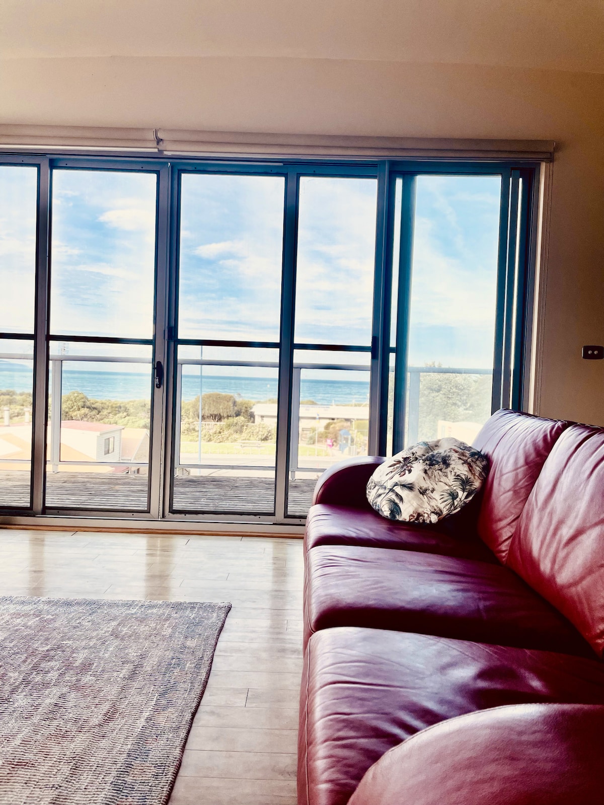 Located right on the Great Ocean Road; tastefully decorated, architecturally designed space to let the holiday atmosphere unwind you. Relax inside or outdoors on one of two balconies. Pour a drink and enjoy views of the bay, mountains and the activities on the main street. Cross the road and feel the sand between your toes. Restaurants, supermarket and shops are at your doorstep. Location matters.