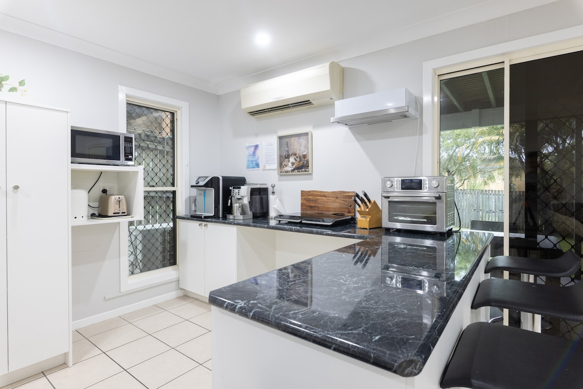 Fully self-contained 2 brm home in bayside Brisbane. Tiddabinda (sister's sitdown) is a contemporary urban Aboriginal styled 2 bedroom totally self-contained home of comfort and modern convenience. With its own front entrance, fully fenced front garden, lounge with excellent entertainment options, a modern full sized kitchen, large bathroom, full sized wardrobes it is home to you. You have your own entrance, full sized lounge, fully functional kitchen (full sized refrigerator, oven, stovetop), a huge bathroom and two bedrooms (both with queen sized beds) with family sized wardrobes. All mod cons are included such as Foxtel, Telstra TV, Google Home and unlimited NBN high speed internet (wifi). This “smart” home is environmentally friendly, uses only non-toxic products and is equipped with two air conditioners and ceiling fans everywhere which ensures your comfort at any time of year. The whole house has filtered water which is delicious to drink. All cleaning products are provided free of charge as this is my home and I prefer to keep it as non-toxic as possible. Smoking area is restricted to the front verandah only. Thank you for respecting this matter. Guests have access to the large covered patio and pool outdoor area – ideal to sip coffee in the morning watching the sun come up while listening to the beautiful sounds of native birds greeting the day or to relax to the waterfall sounds in the evening sipping on some local wine from Sirromet Winery just up the road. You will have full privacy during your stay but I am on hand should you need help or advice with anything. I live in the back half of the home with my own entrance. You may see me coming and going and you will always get a friendly wave. I respect your privacy but if you feel like a chat over a coffee or wine, I am always up for conversation and swapping yarns. I love to find out about other people’s cultures and very willing to share mine. The apartment is located in a quiet neighbourhood with plenty of open green space, walking tracks, and lots of wildlife. Major shopping centres and an entertainment precinct are within easy walking distance, only 7 mins to Sleeman’s Sport Complex and Belmont Shooting Range, 10 mins to Sirromet Winery, 20 mins to airport, 15mins to Cleveland (ferry to Stradbroke Island (Minjerribah) and 35 mins from Brisbane CBD. Walking distance to public transport, local bush walking tracks. Most people use private cars but both taxis and uber are readily available. If you require a rental car, there is a spare car on the property. Located in Capalaba, we are 7 mins from Chandler (home of the Sleeman Sports Complex and the Belmont Shooting Range) with simple public transport to those locations. Walking distance is the Capalaba Entertainment Precinct with two shopping centres, restaurants and cinemas as well as a major bus interchange providing public transport around Brisbane (45 minutes to the CBD of Brisbane). Sirromet Winery (hosting Day on the Green events) is 12 minutes up the road, the ferry to various Moreton Bay Islands is 17 mins down the road, the airport is 20 minutes away, and only 50 minutes to the Carrara Stadium on the Gold Coast. Dreamworld, MovieWorld, Wet n Wild, Outback Spectacular and Seaworld are all well less than an hours drive away. There is one step into the house but all one level once inside. Rooms are family home size. The front yard is fenced and your well- behaved furbabies are welcomed once approved (please advise ahead of time). The home is located in a quiet neighbourhood with plenty of open green space, walking tracks, and lots of wildlife. Major shopping centres and an entertainment precinct are within easy walking distance, only 7 mins to Sleeman’s Sport Complex and Belmont Shooting Range, 10 mins to Sirromet Winery, 20 mins to airport, 15mins to Cleveland (ferry to Stradbroke Island (Minjerribah) and 35 mins from Brisbane CBD.