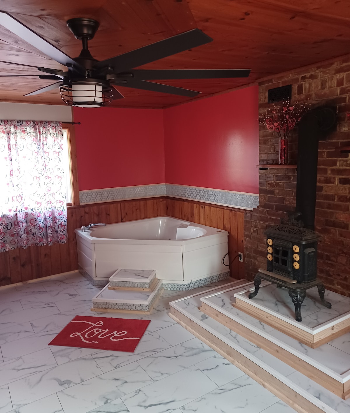Enjoy a peaceful retreat at the Red Roof Lodge in Wyoming, NY! The apartment-style guest house is located above the barn. It's a perfect location for a tranquil getaway. Tucked away just off the beaten path, you'll find yourself surrounded by the sounds of nature. Unplug and enjoy morning walks along on-site walking trails, shower under the stars in the outdoor shower or visit nearby attractions like Niagara Falls, Letchworth State Park, Six Flags or the quaint town of Warsaw.