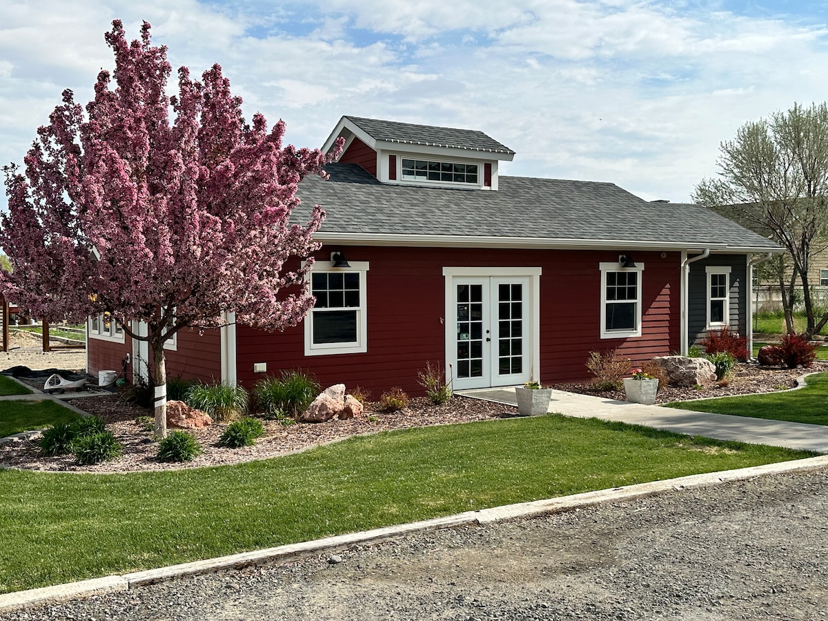 The Roost is a custom build with quality craftmanship. It's set among old growth cottonwood trees in a relaxed older neighborhood that feels like the country. You'll have the entire guesthouse to yourself, a small patio outside to bbq and a yard with fire table and 4 adirondack chairs to enjoy the many birds and deer in the summer. Downstairs is a queen bedroom/bath with a trundle in the loft. Fully equipped kitchen with small stainless gas range, apartment sized fridge and dishwasher.