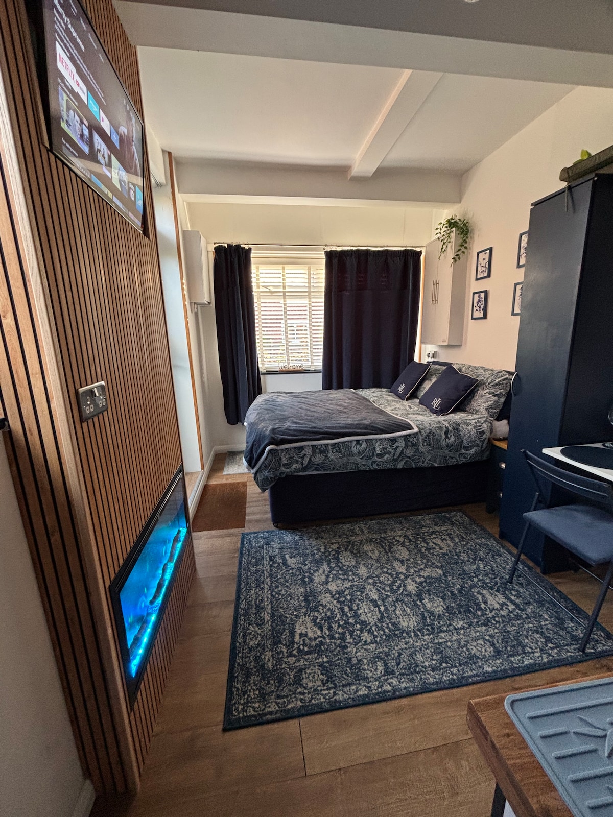 Stylish one-bed annex with outdoor hot tub access, ideal for short stays, couples or airport stopovers. Enjoy complimentary Hot Tub use on stays of 2 nights or more. For 1-night stays, there’s a £50 fee to cover cleaning, heating & preparation Just 5 mins from Manchester Airport with excellent transport links to the city centre and event venues Fly & Stay Package with parking + transfers direct from the property (£95/week, £125/fortnight) — includes free hot tub use for total convenience